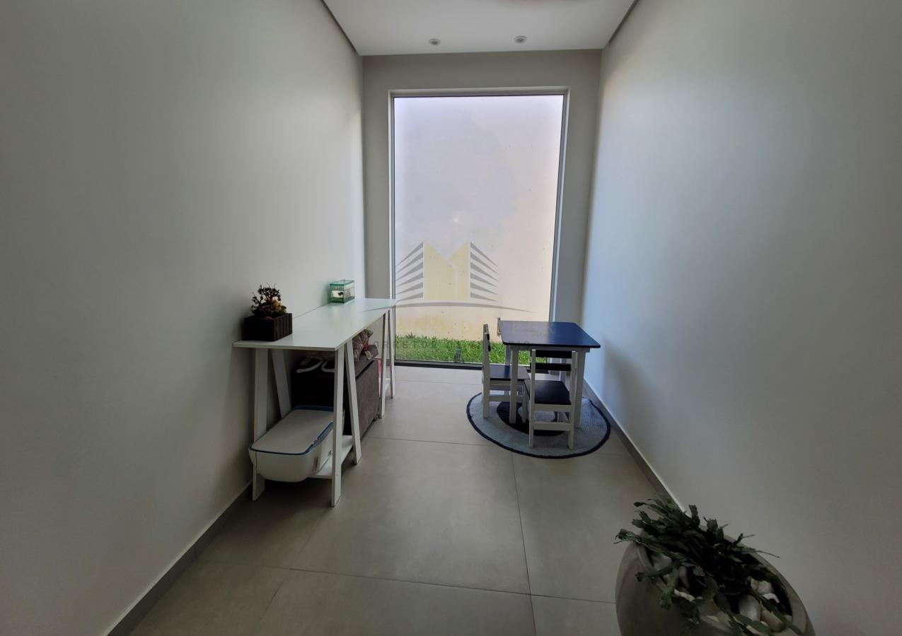 A casa possui um projeto, planta e fundação projetada para um segundo pavimento, permitindo expansão futura com banheiro, quarto adicional, closet, escritório e área lateral.