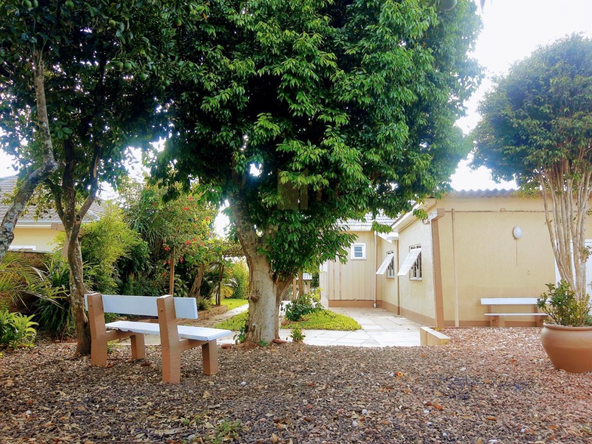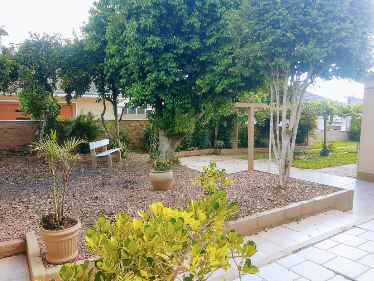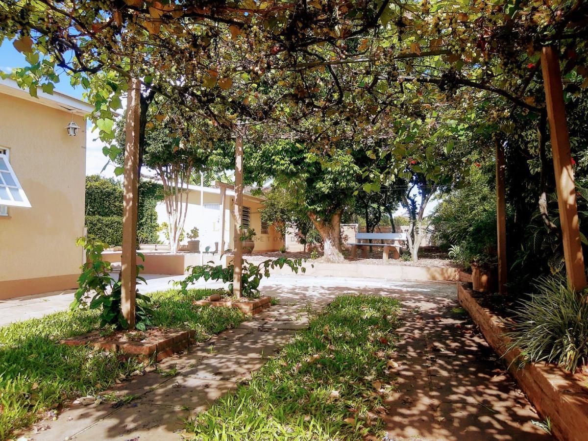 Belo pátio com parreiral de uvas, árvores frutíferas e jardim cuidado
